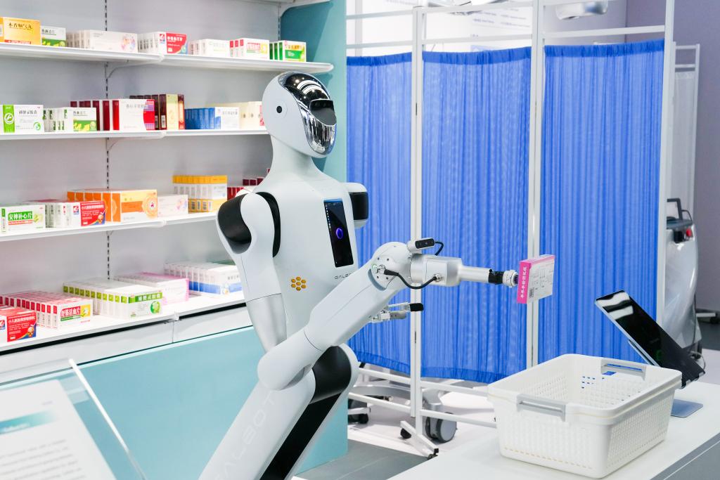 2025年2月24日,正在“机械世界”的使用场景示范区,银河通用机械人进行药店无人值守场景演示。记者 鞠焕 摄。